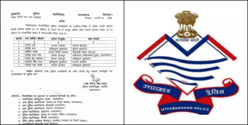 उत्तराखंड पुलिस महकमे में शुक्रवार को बड़ा प्रशासनिक फेरबदल किया गया है। गृह विभाग ने 15 अपर पुलिस अधीक्षक (ASP) के तबादले के आदेश जारी किए हैं, जिनमें से 11 अधिकारी हाल ही में डीएसपी से एएसपी पद पर पदोन्नत हुए थे। वहीं, पुलिस मुख्यालय स्तर से सात उप पुलिस अधीक्षकों (DSP) को भी नई जिम्मेदारियां सौंपी गई हैं।पदोन्नति के बाद 11 एएसपी को मिली नई तैनाती