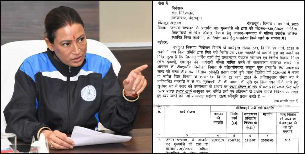 मंत्री रेखा आर्य ने बताया कि स्पोर्ट्स कॉलेज निर्माण कार्य हेतु वित्तीय वर्ष 2024-25 में उक्त के सापेक्ष वित्त विभाग द्वारा कार्य पूर्ति एवं कियान्वयन किये जाने हेतु सुसंगत मद में बजट की उपलब्धता के आधार पर कुल बजट लगभग 256 करोड़ के सापेक्ष प्रथम किश्त के रूप में रू. 5.15 लाख (रू० पांच लाख पन्द्रह हजार मात्र) अवमुक्त कर व्यय करने की राज्यपाल महोदय द्वारा सहर्ष स्वीकृति प्रदान की गई है।