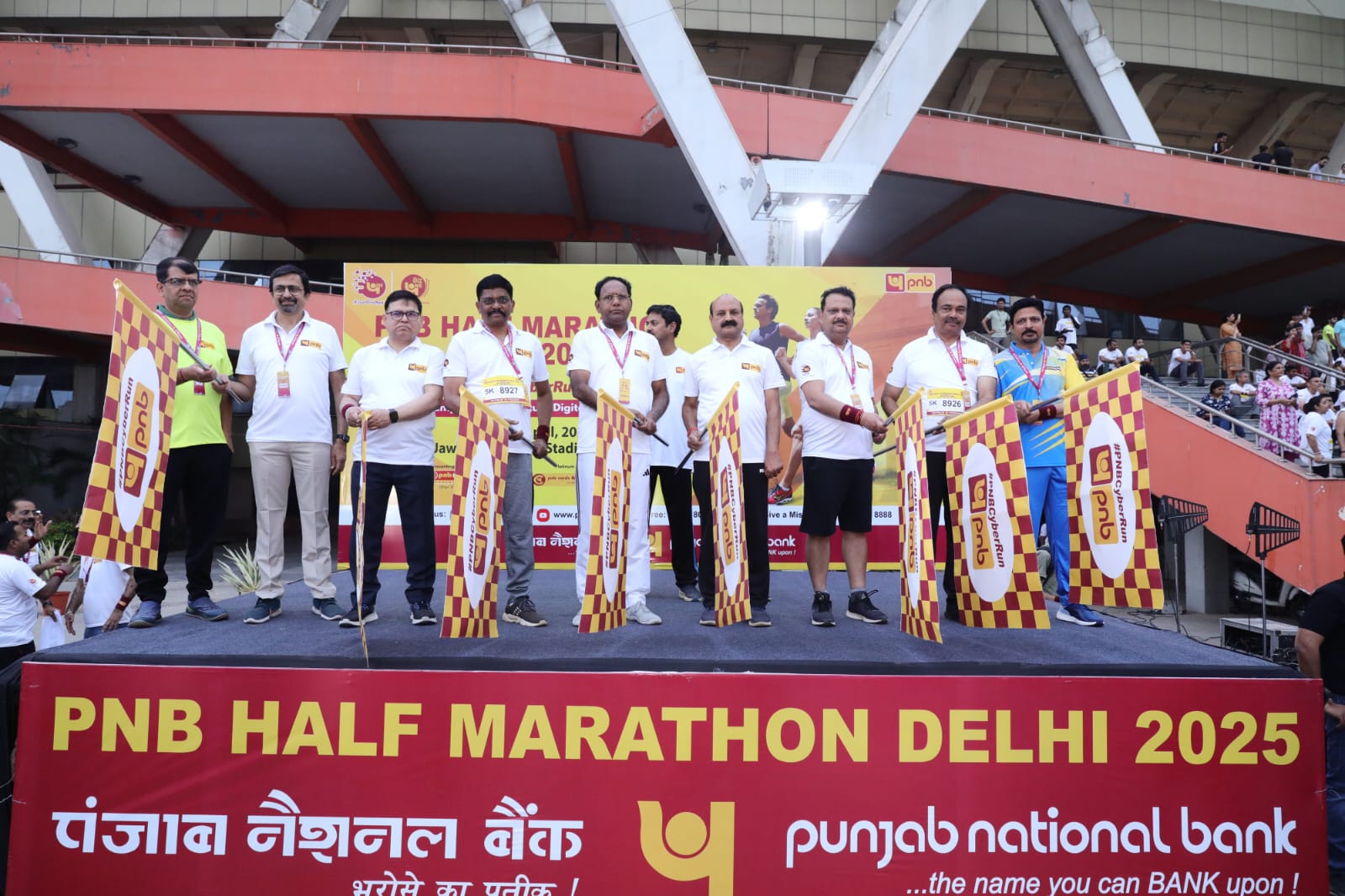 जवाहरलाल नेहरू स्टेडियम, नई दिल्ली में मैराथन का औपचारिक रूप से शुभारंभ श्री एम. नागराजू (सचिव, डीएफएस), श्री अशोक चंद्र (पीएनबी एमडी एवं सीईओ), श्री समीर बंसल (पीएनबी मेटलाइफ इंश्योरेंस एमडी एवं सीईओ), श्री गिरीश कौसगी (पीएनबी हाउसिंग फाइनेंस लिमिटेड एमडी एवं सीईओ) और पीएनबी के शीर्ष प्रबंधन द्वारा किया गया।